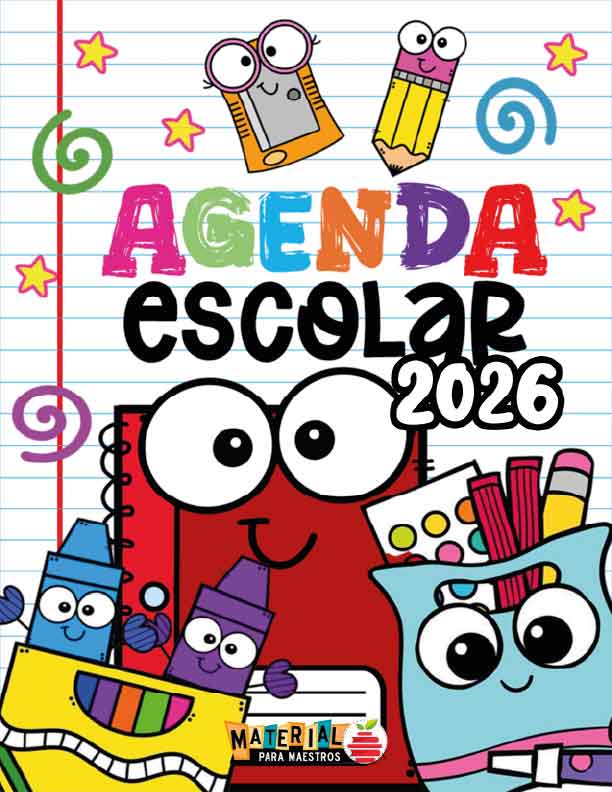 Agenda escolar muy completa con apartados como: estadísticas, horario de clases, directorio telefónico, cumpleaños, lista de asistencia, registro de tareas y trabajos, organizador mensual, etc.