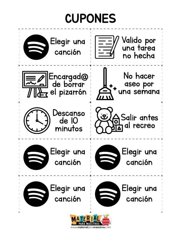 Cuponera para motivar a los alumnos
