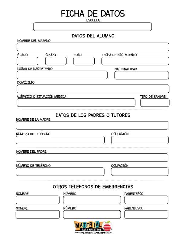 Hoja de datos del alumno para imprimir