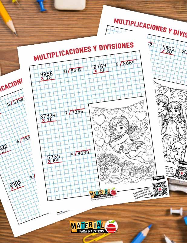 InicioDía del Amor y la AmistadHojas de multiplicaciones y divisiones con temática del Día del Amor y...