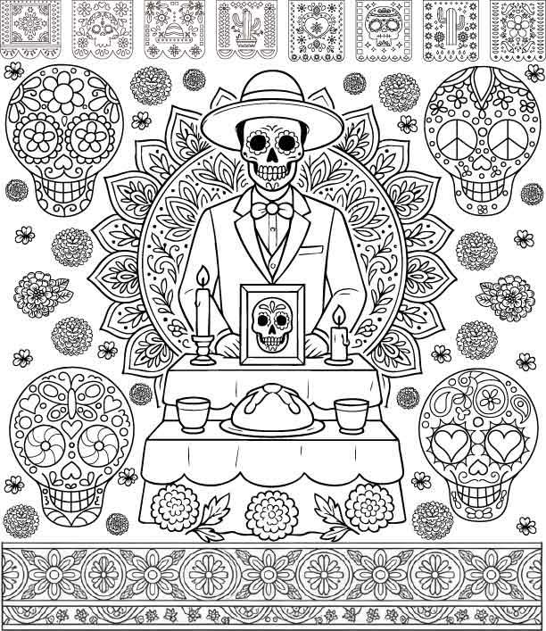 Posters del Día de Muertos para colorear