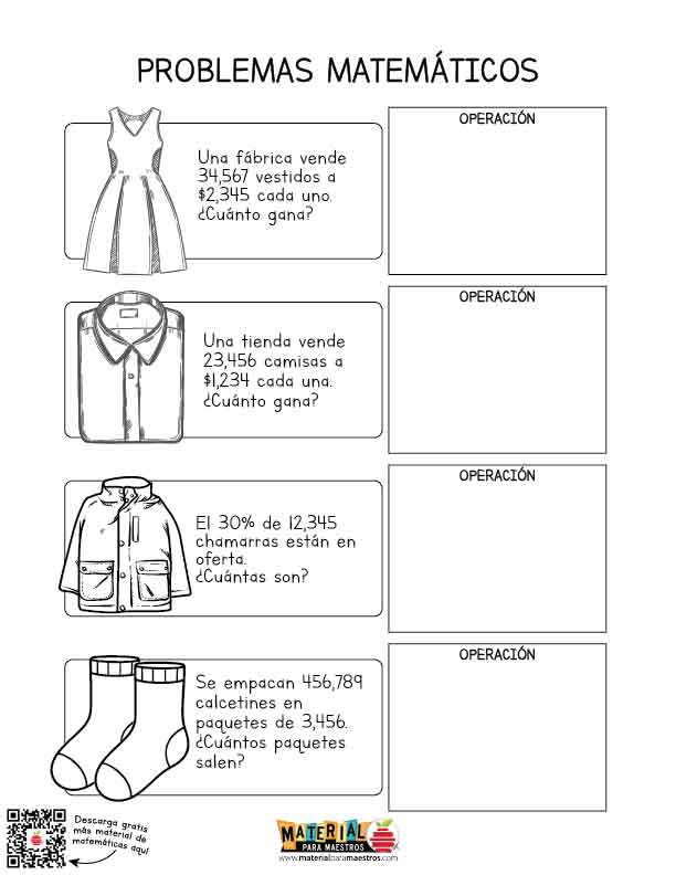 Problemas matemáticos de multiplicaciones, divisiones y porcentajes