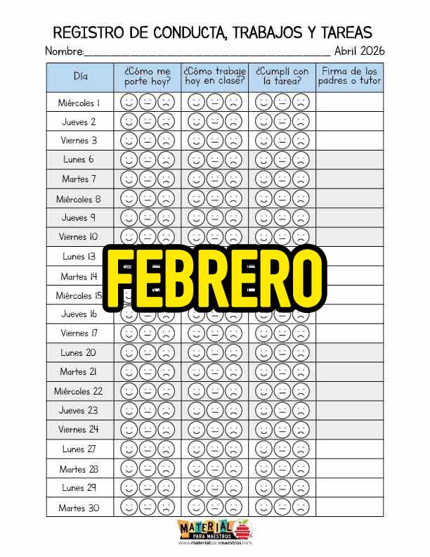 Registro de conducta, trabajos y tareas – Febrero 2026