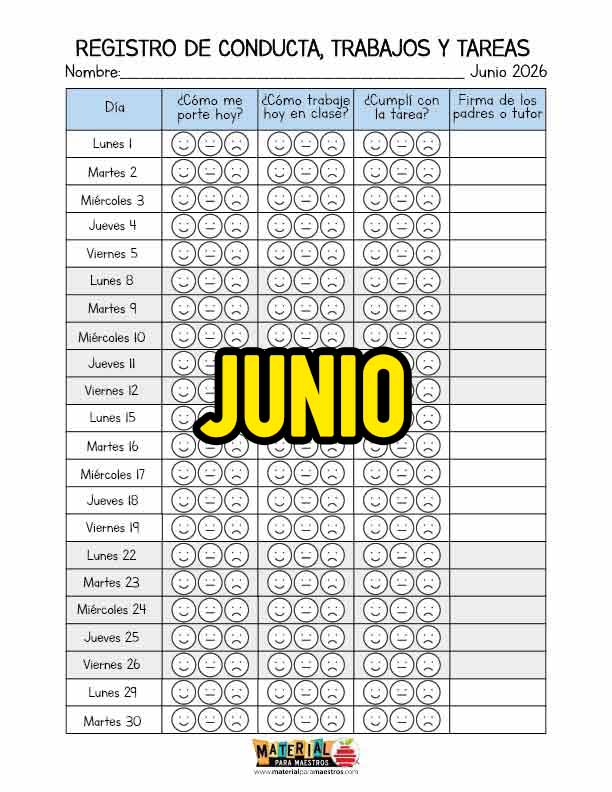 Registro de conducta, trabajos y tareas – Junio 2026