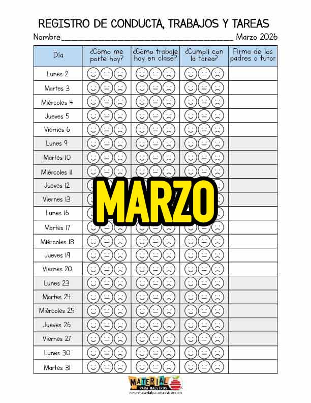 Registro de conducta, trabajos y tareas – Marzo 2026