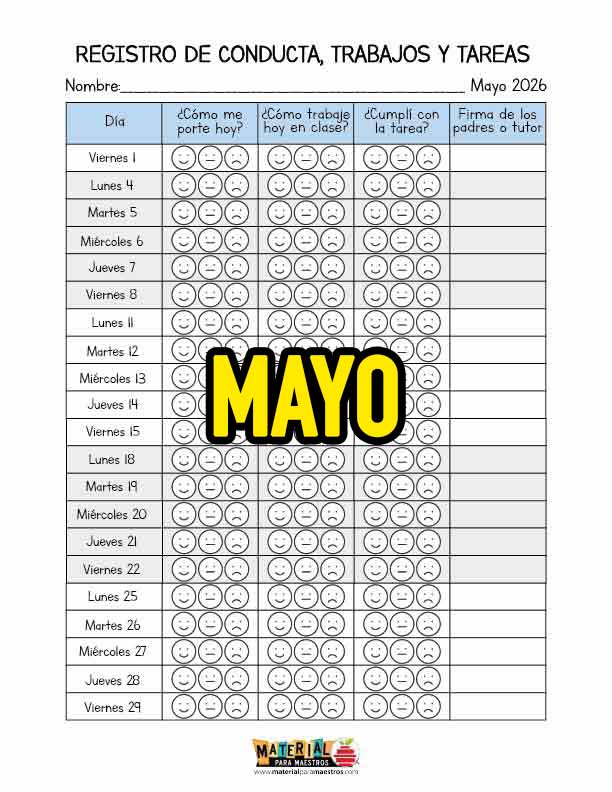 Registro de conducta, trabajos y tareas – Mayo 2026