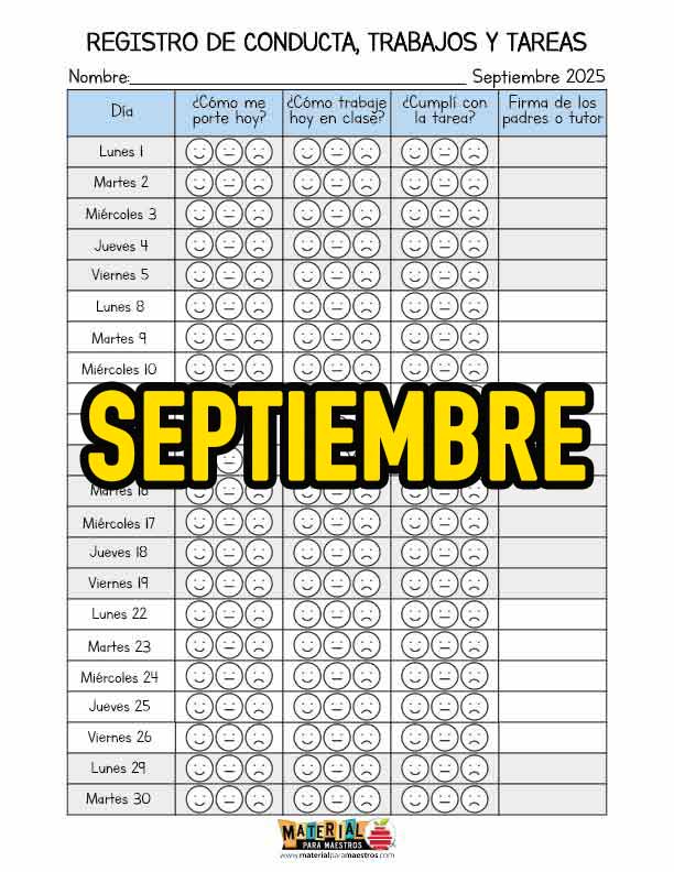 Registro de conducta, trabajos y tareas – Septiembre 2025
